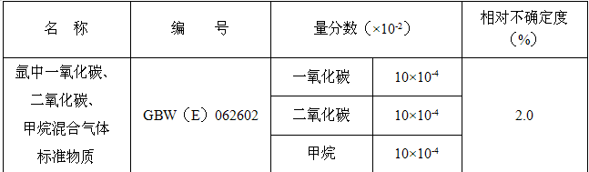 GBW(E)062602氩中一氧化碳、二氧化碳、甲烷 混合气体标准物质