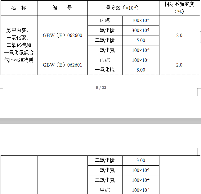 英文名称:氮中丙烷、一氧化碳、二氧化碳和一氧化氮混合气体标准物质订货以英文名称为准。