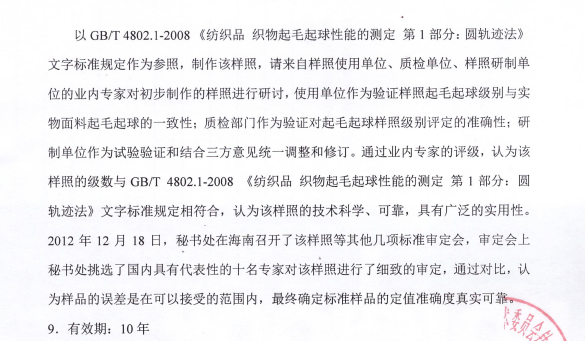 英文名称:Pilling standand of knitted fabric订货以英文名称为准。